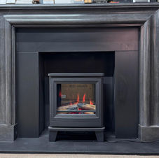 Pictured in Carrara Marble with a Harlington Black Cast Insert, Solid Fuel Fire and Polished Granite, Slabbed Hearth.